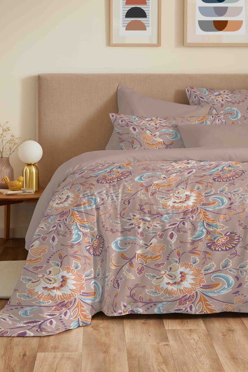 Parure de couette réversible en coton 57 fils/cm² Bergame - Nude