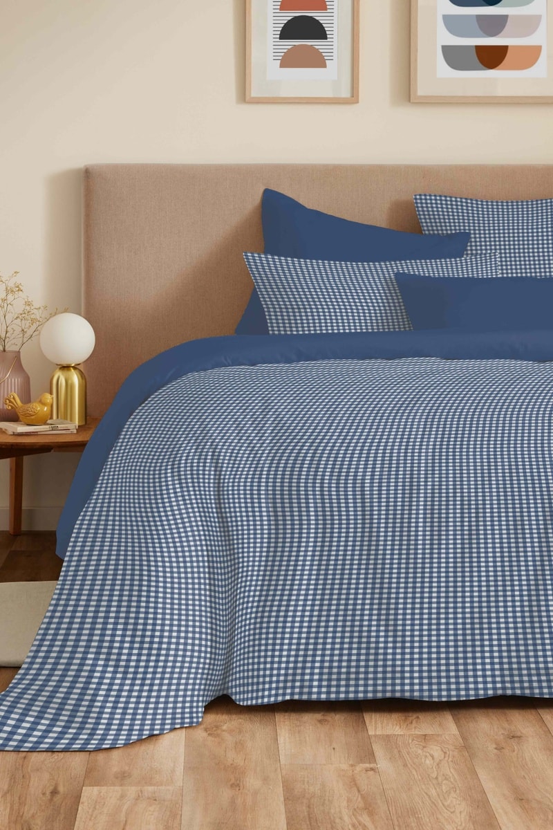 Parure de couette réversible en coton 57 fils/cm² Gabrielle - Bleu