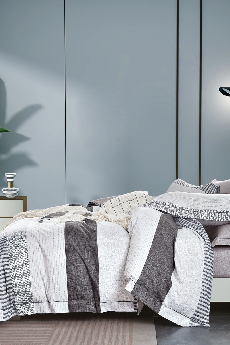 Parure de couette en percale de coton 80 fils/cm² - Blanc et noir