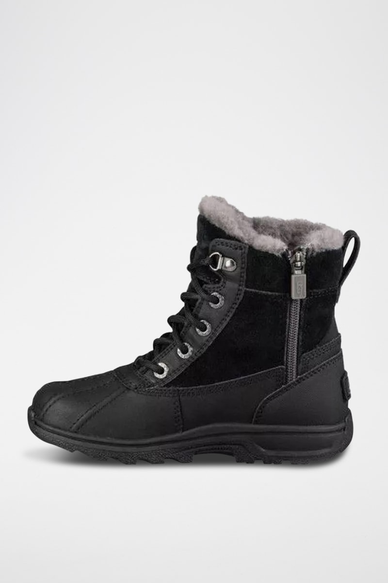 Bottines fourrées en cuir et en nubuck.