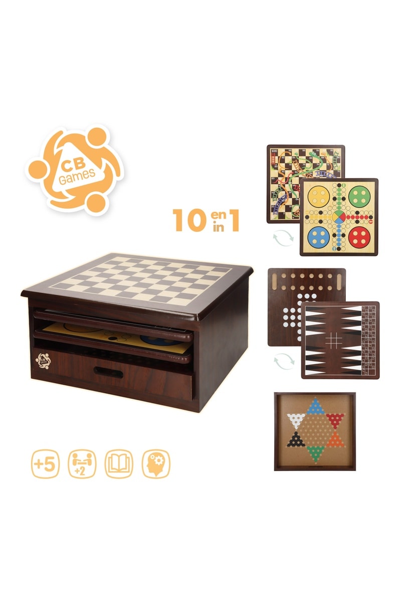 Règles du jeu : ce coffret jeux 10-en-1 permet de jouer à une grande variété de jeux classiques : échecs, dames, mancala, backgammon, morpion, serpents et échelles, dames chinoises, petits chevaux, solitaire et compétition de dés.