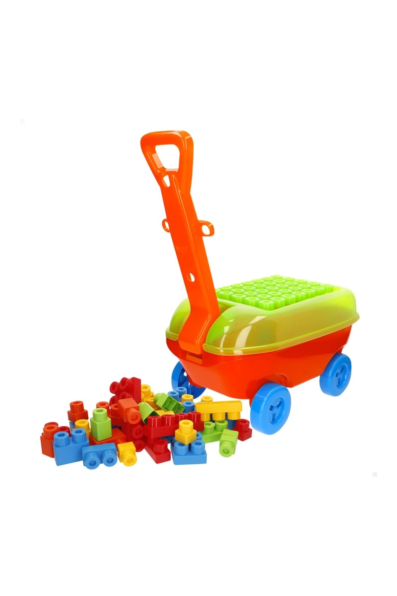 L'enfant peut transporter les blocs grâce à la vagonette munie d'une poignée, puis assembler les blocs pour créer différentes constructions.