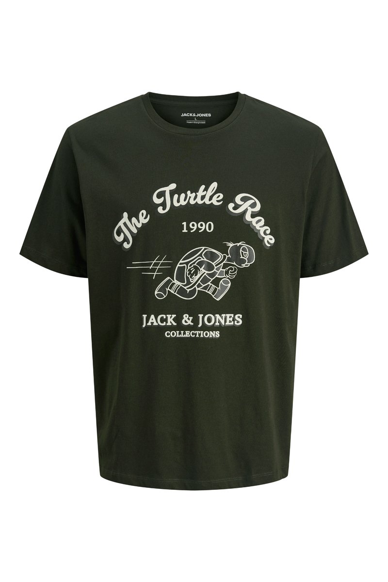 Chiffres, lettrage, motif tortue et logo devant.