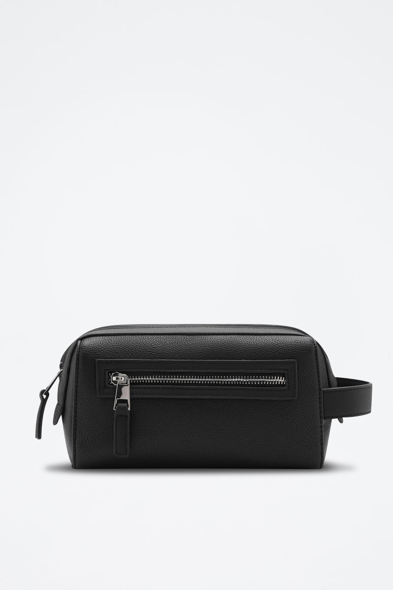 Trousse cuir foulé zip - Noir