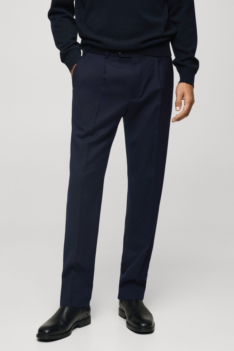Pantalon costume flanelle 100 % laine vierge - Bleu marine