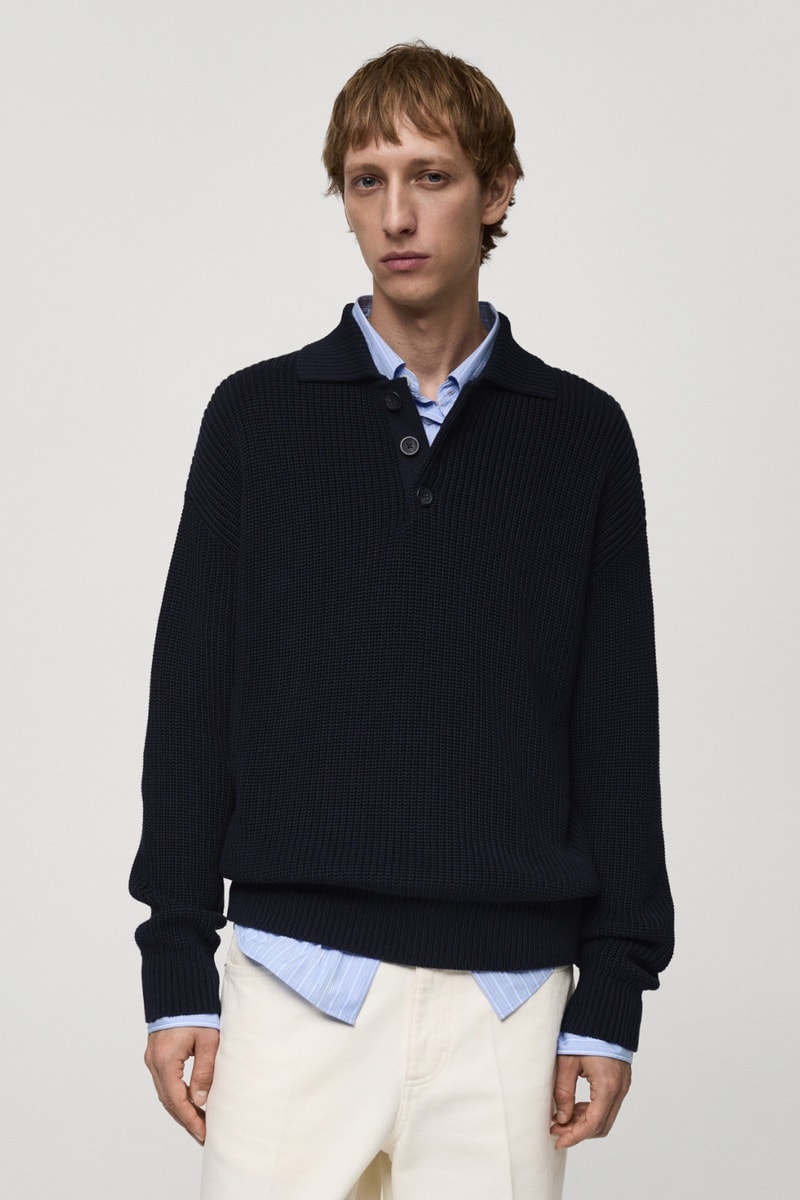 Pull-over polo maille épaisse côtelée.
