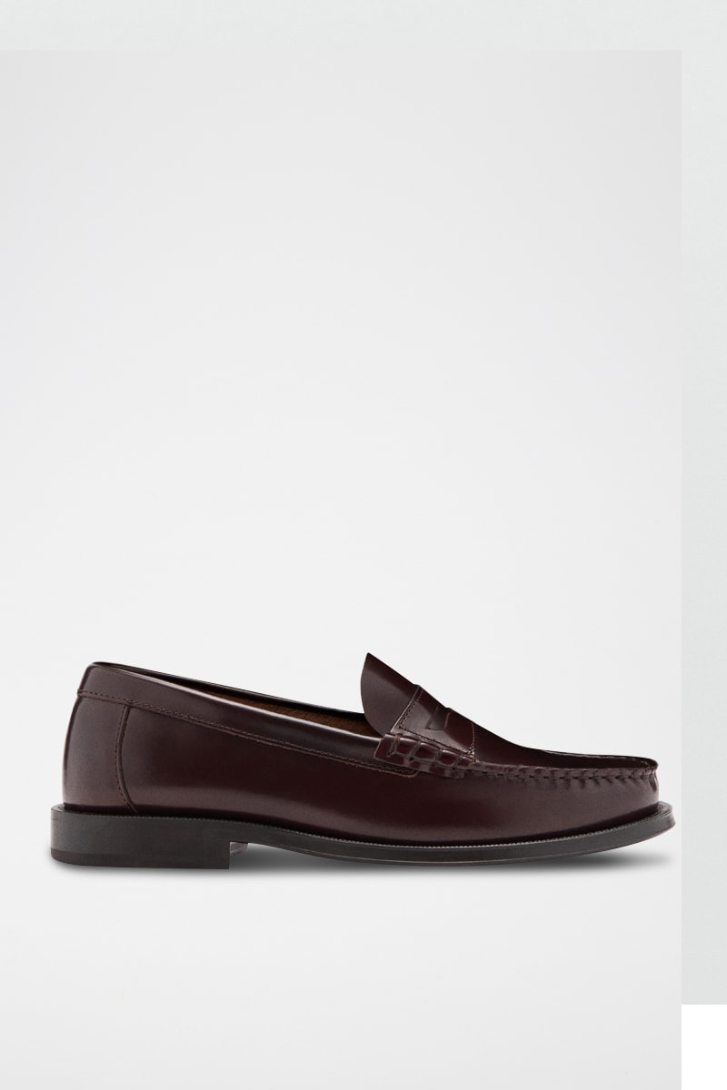 Mocassins découpe cuir effet patiné - Bordeaux
