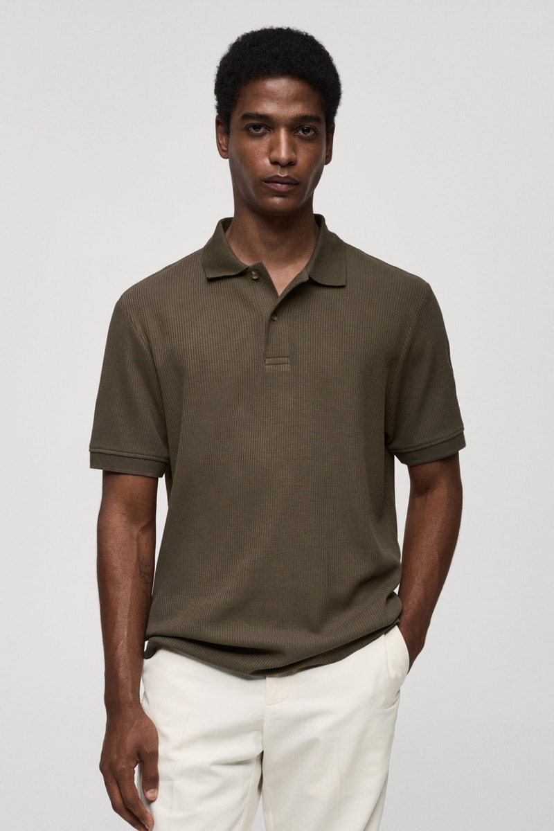 Polo coton maille côtelée - Vert foncé
