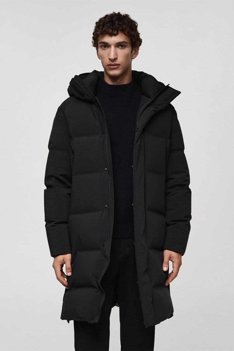 Anorak long imperméable à rembourrage en duvet et plumes - Noir