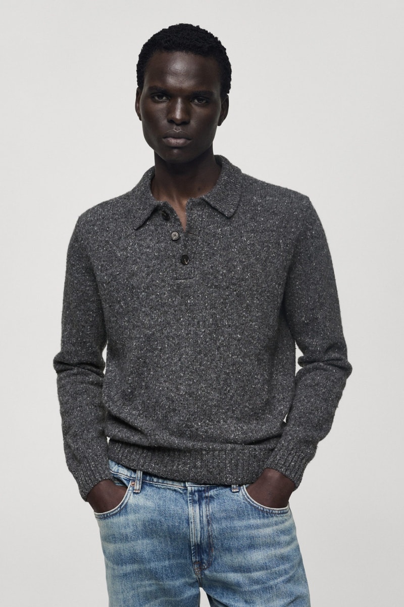 Polo maille laine chinée.