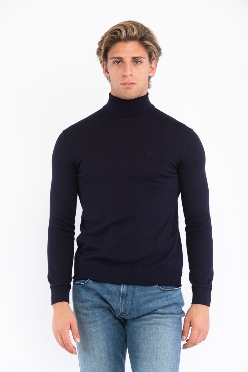 Pull en laine vierge - Bleu foncé - Emporio Armani