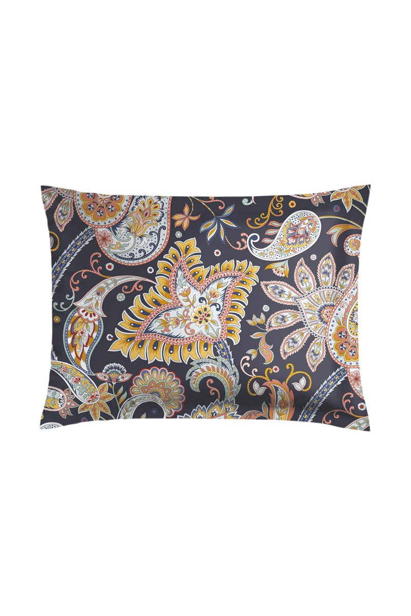 2 taies d'oreiller en satin de coton 80 fils/cm² Boteh - Bleu foncé et orange