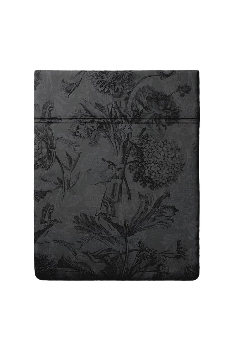 Drap plat en satin de coton 80 fils/cm² Toile Fleurie - Gris foncé