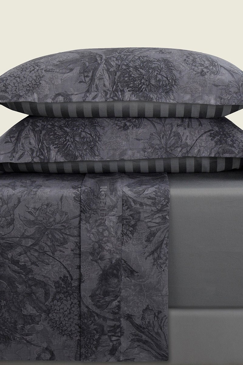 Parure de draps en satin de coton 80 fils/cm² Toile Fleurie - Gris foncé