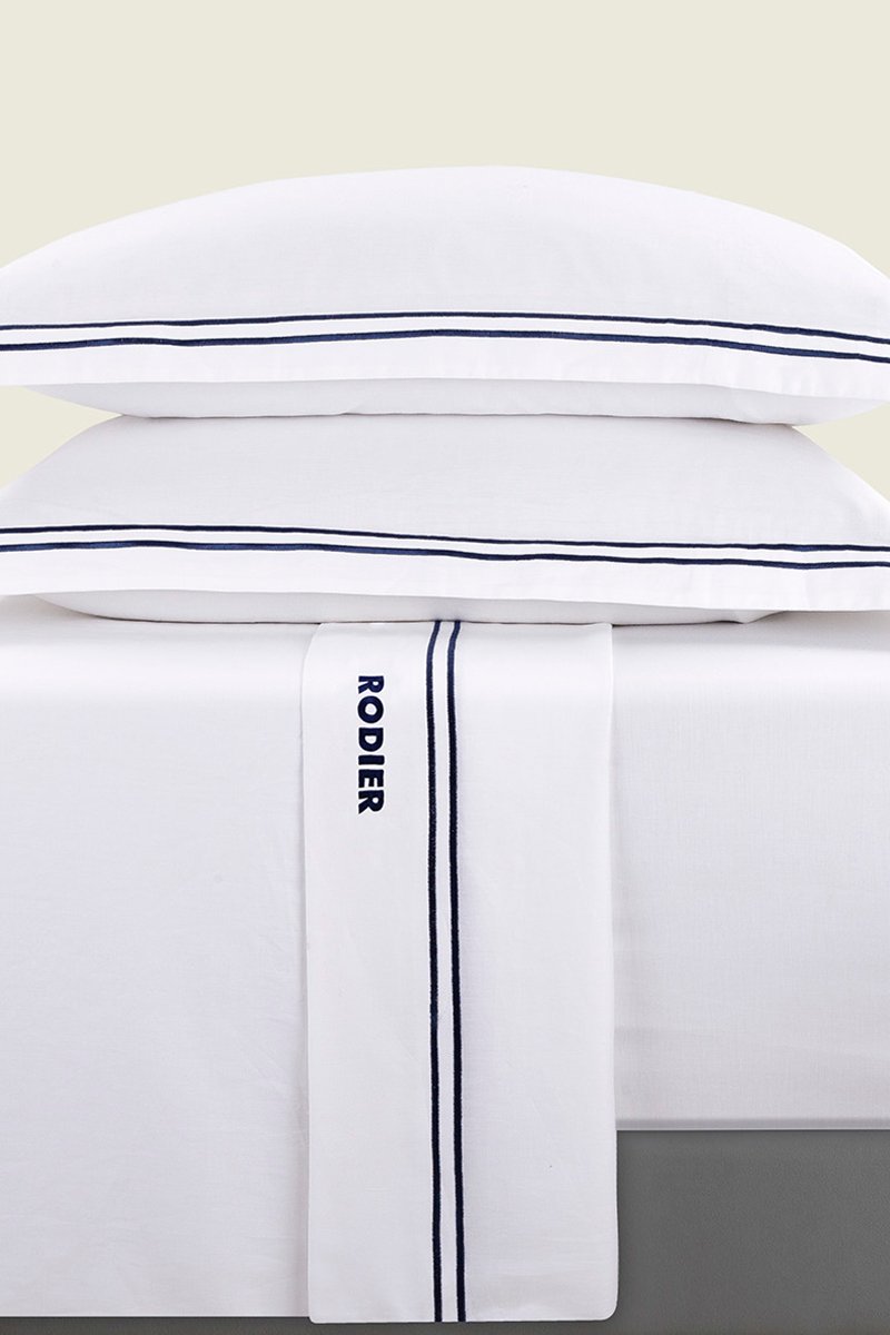 Parure de draps satin de coton 80 fils/cm² Nice - Bleu foncé et blanc