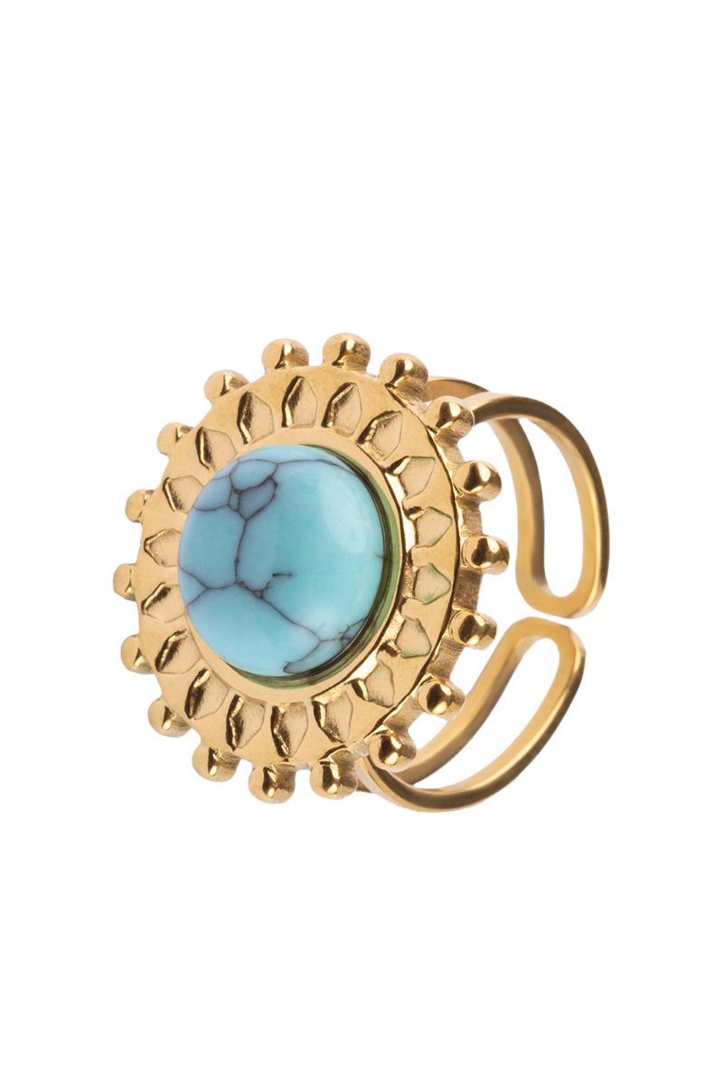 Bague réglable en plaqué or jaune sertie d'une turquoise.