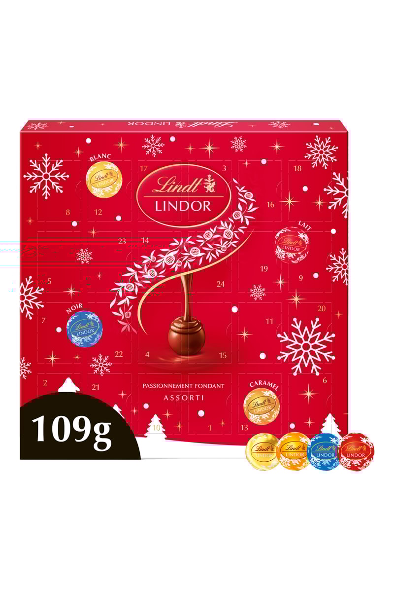 Les Maîtres Chocolatiers Lindt ont préparé pour les fêtes de fin d'année le compagnon idéal pour patienter jusqu'à Noël : le Calendrier de l'Avent Lindt Lindor assortis 109 g.
