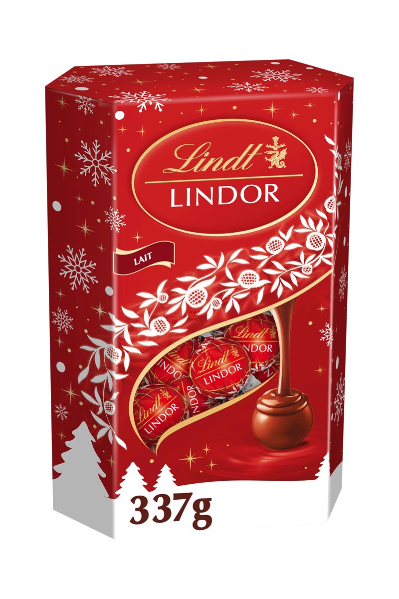 Pour les fêtes de Noël, craquez pour Lindor chocolat au lait, la recette emblématique Lindor. Un cœur passionnément fondant, enrobé d'une délicate coquille de chocolat au lait. Le format idéal à partager, à offrir ou à ne garder rien que pour soi. Croquez sa délicate coquille, et son cœur passionnément fondant vous emporte comme dans un rêve, pour un petit moment de bonheur rien qu'à vous. Fondez de bonheur avec Lindor, créé par les maîtres chocolatiers Lindt. La passion et l'amour pour le chocolat depuis 1845.
