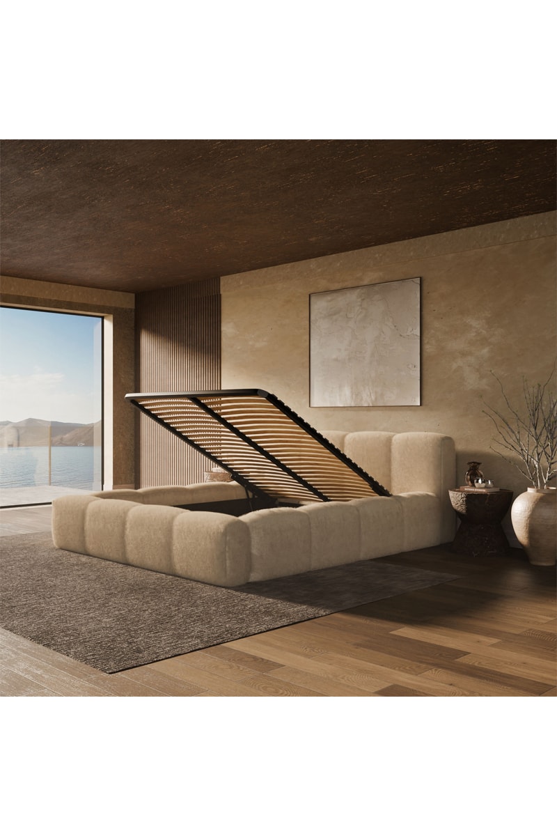 Offrez à votre chambre une touche chic et fonctionnelle avec le Lit Coffre Equinox. Son design élégant et son tissu bouclé luxueux apportent sophistication et confort, tandis que son coffre spacieux vous permet de garder votre espace parfaitement organisé.