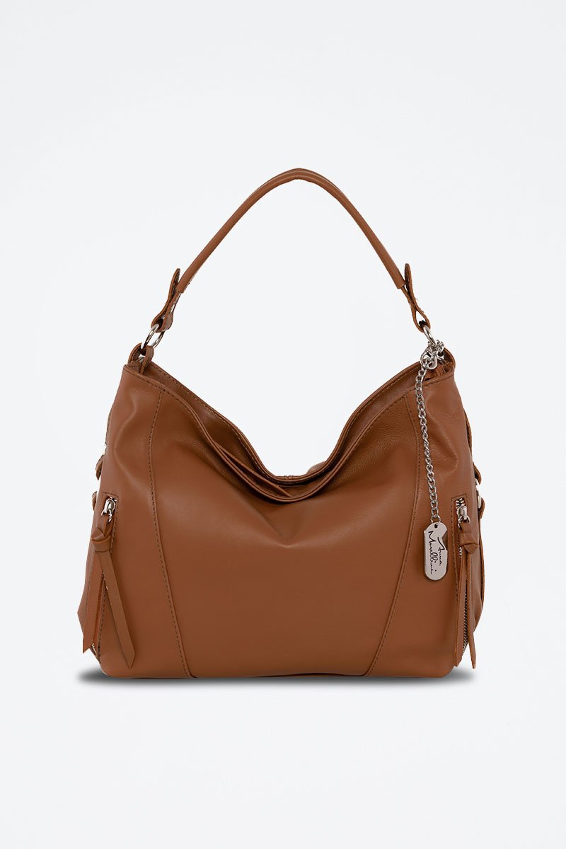 Sac porté épaule en cuir Noalia - Argenté et marron
