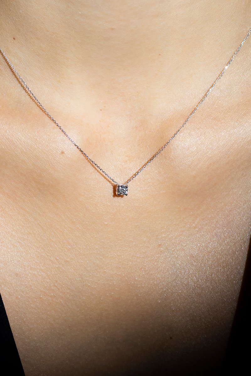 Collier en or blanc serti d'un diamant.