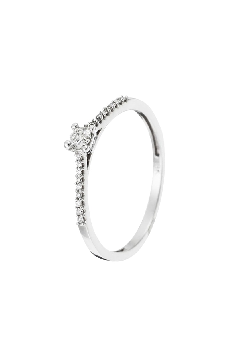 Bague en or blanc sertie de 19 diamants dont un solitaire.