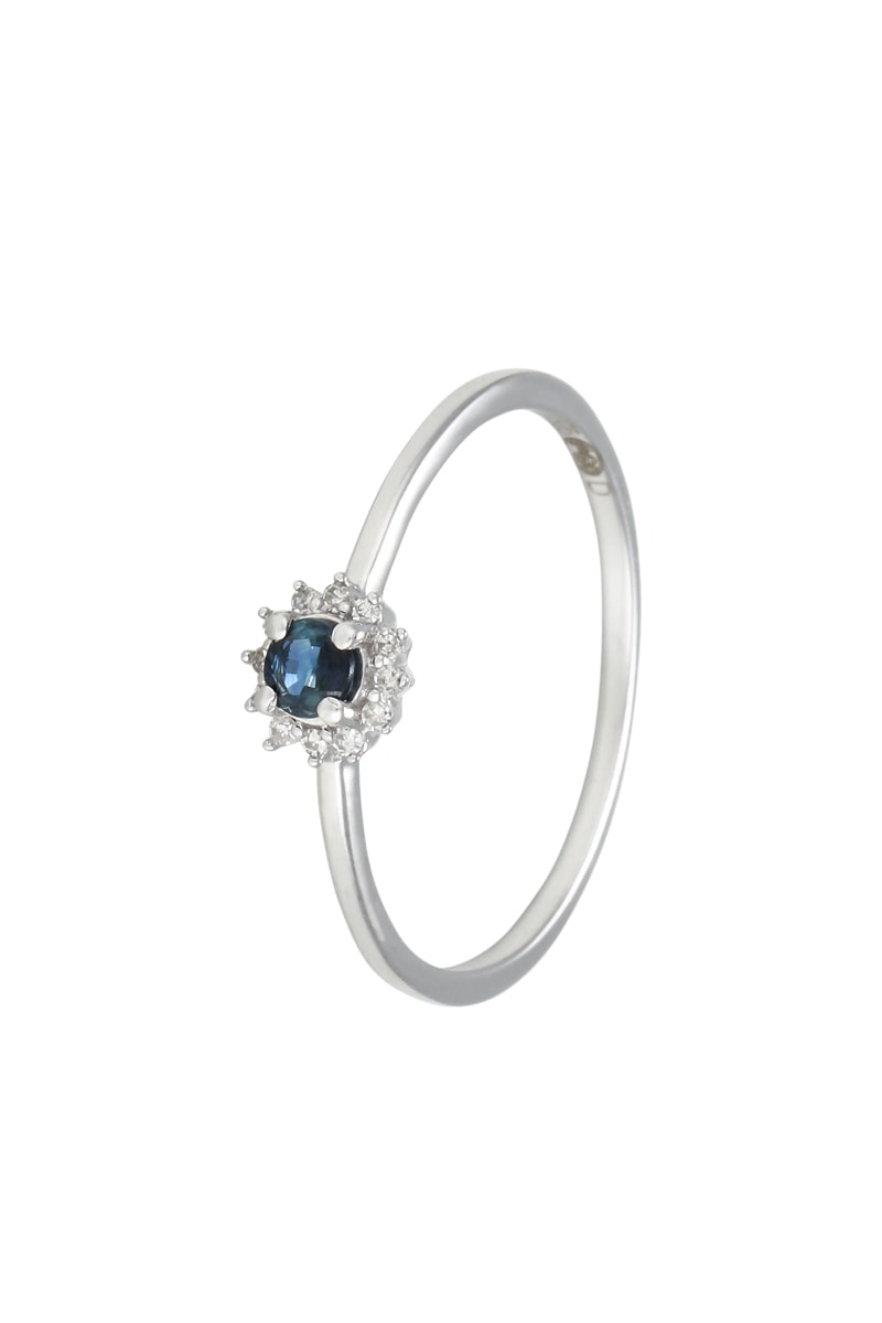 Bague en or blanc sertie d’un saphir et de 12 diamants.