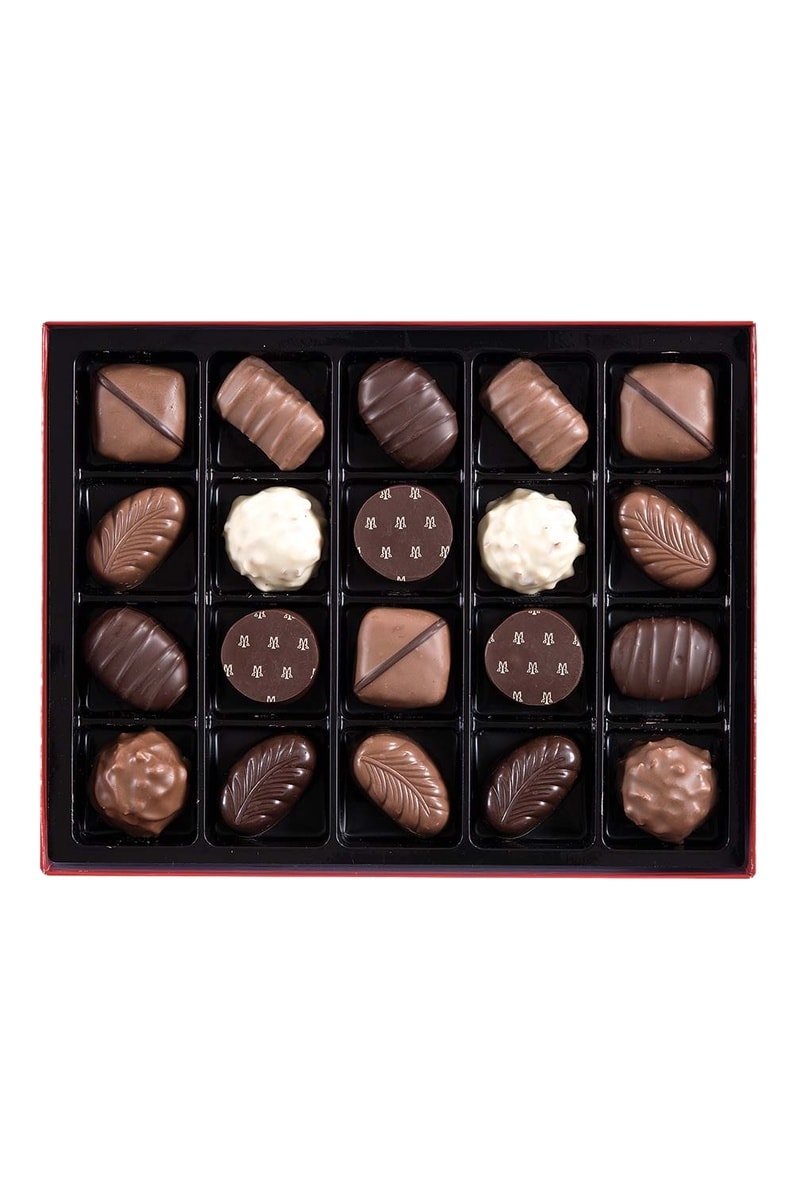 Un coffret aux tendances parisiennes, un choix généreux de chocolats raffinés pur beurre de cacao.