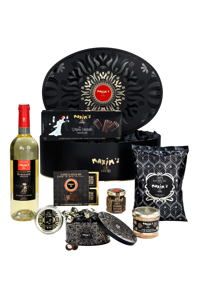 Découvrez les incontournables assortiments de chocolats, les différentes spécialités salés et les vins et champagnes médaillés de Maxim’s de Paris ! N’attendez plus pour vous laisser tenter par les coffrets gastronomiques qui feront plaisir à tous les amoureux des produits de qualité.