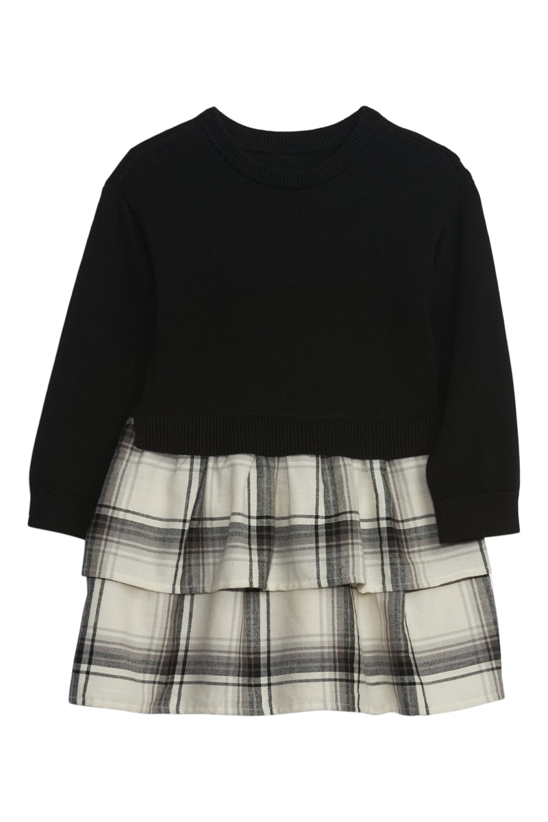 Volant et motifs à carreaux sur la jupe.