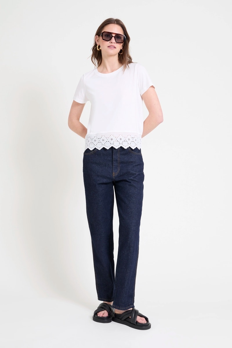 Empiècement en broderie anglaise à la base.