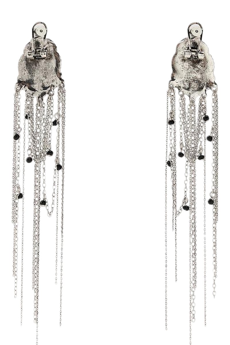 Boucles d’oreilles pendantes serties de cristaux.