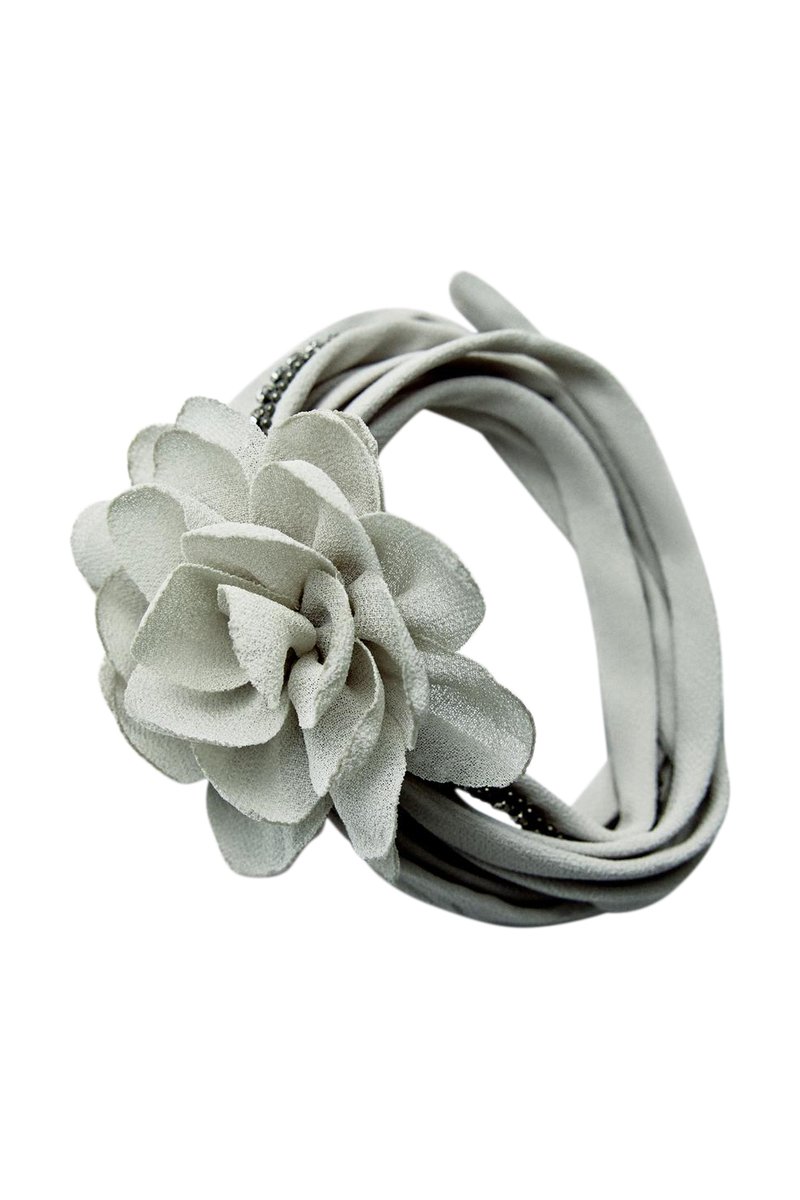 Strass, perles décoratives et empiècement à motif fleur devant.