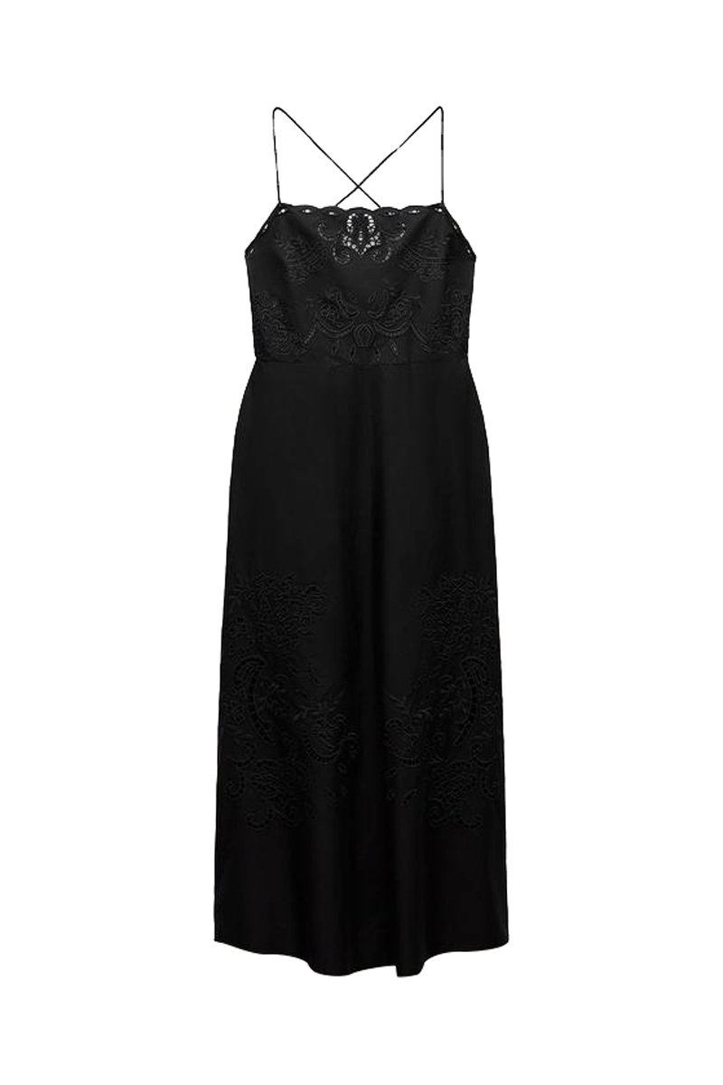 Robe midi en broderie anglaise - Noir