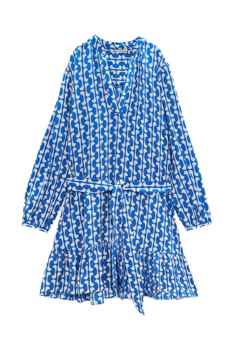 Robe patineuse - Blanc et bleu cobalt