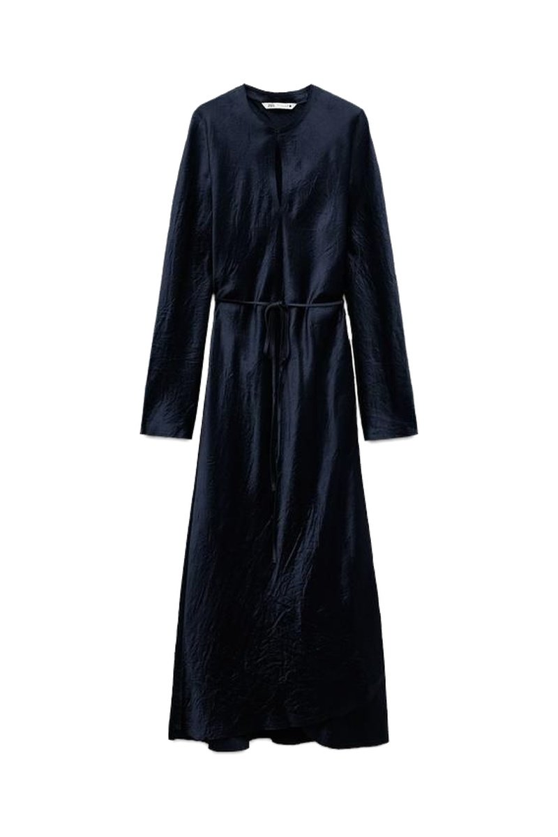 Robe longue satinée.