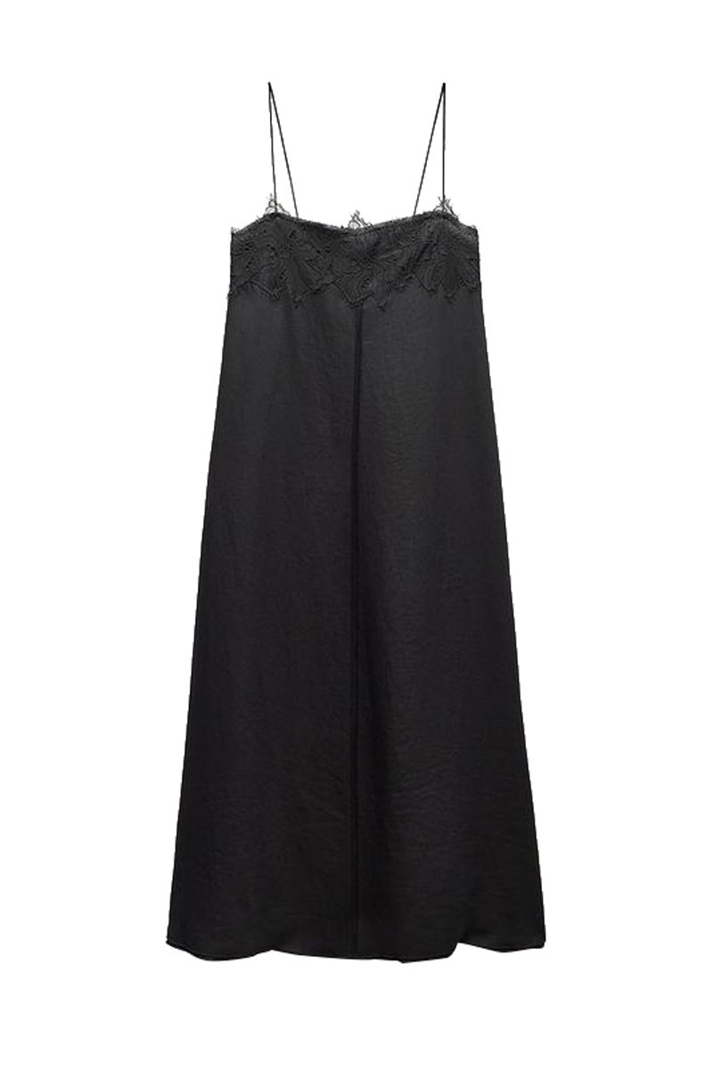 Robe midi en lin - Noir