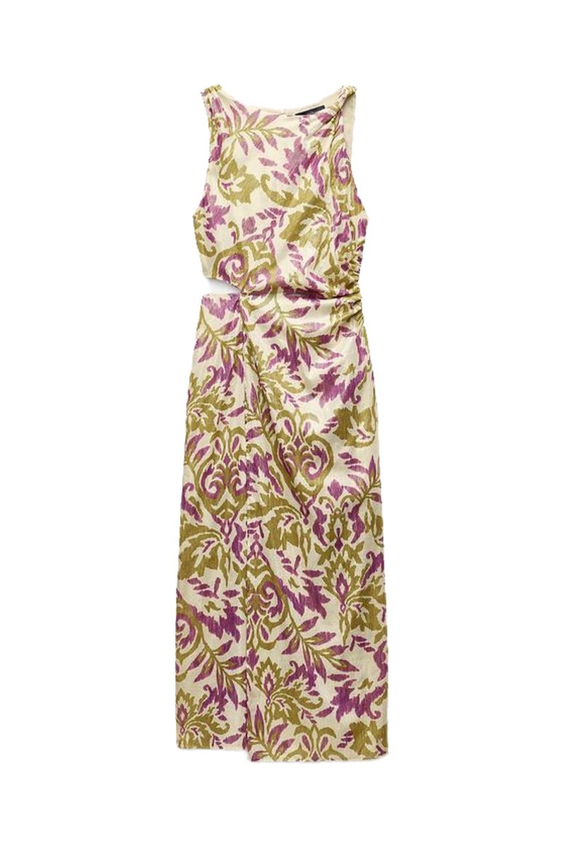 Robe midi - Ecru et vert olive
