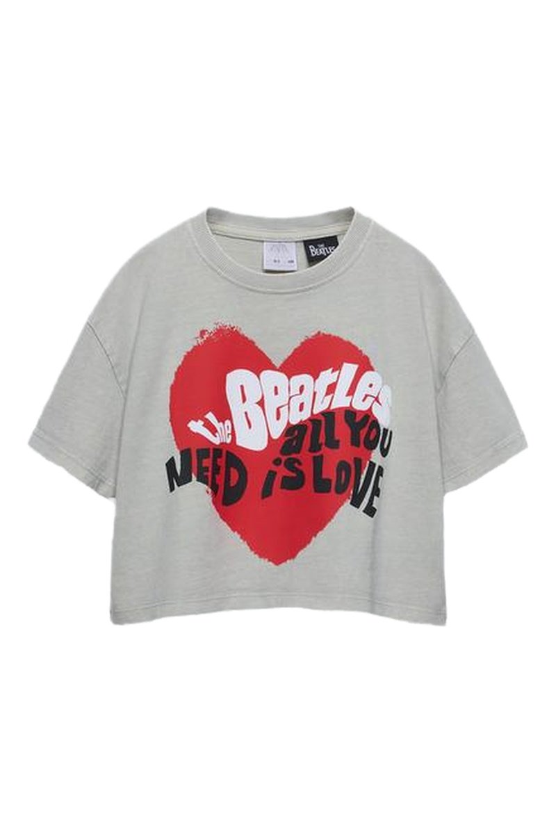 T-shirt cropped The Beatles - Gris clair