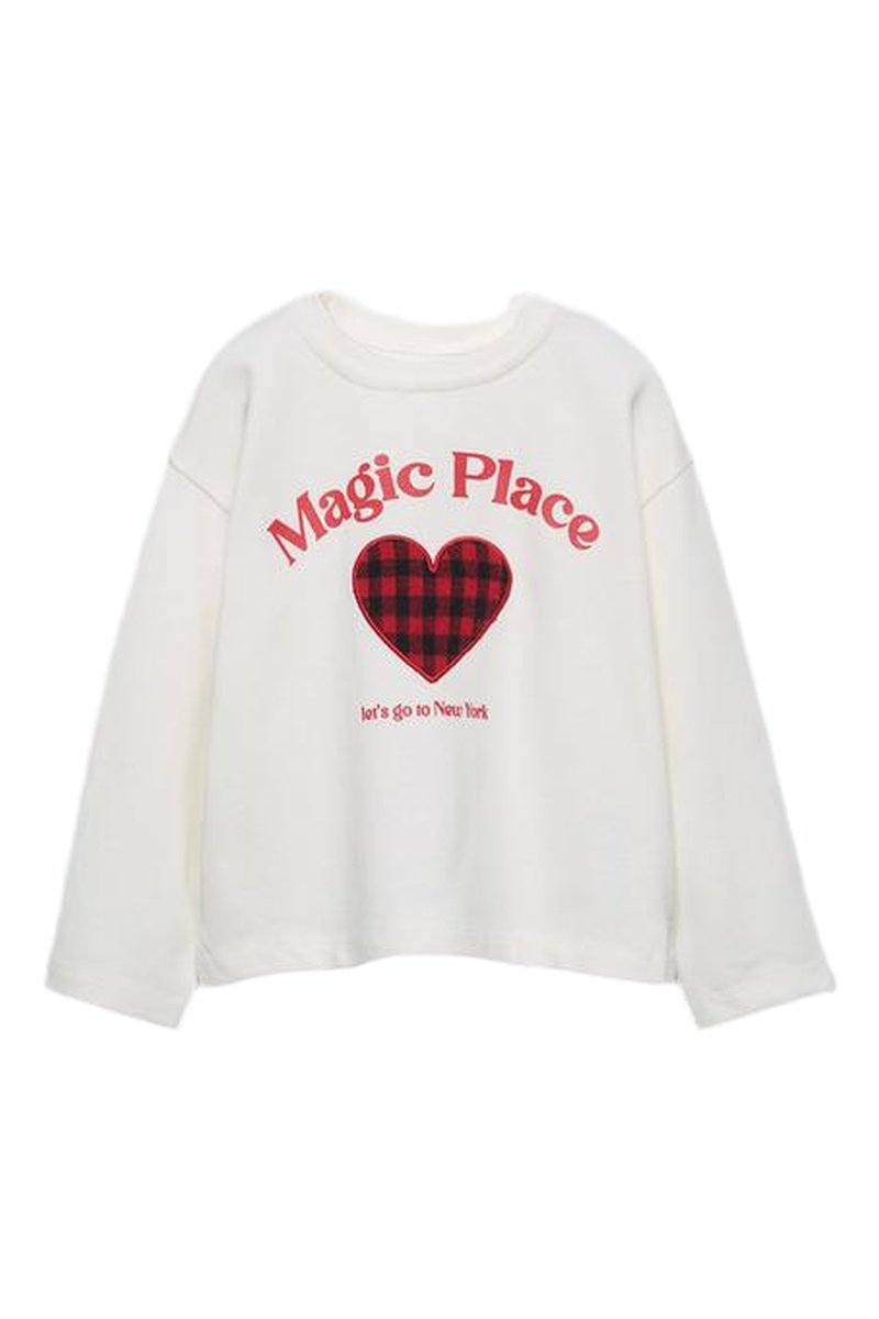 Lettrage et empiècement forme cœur à motifs vichy devant.