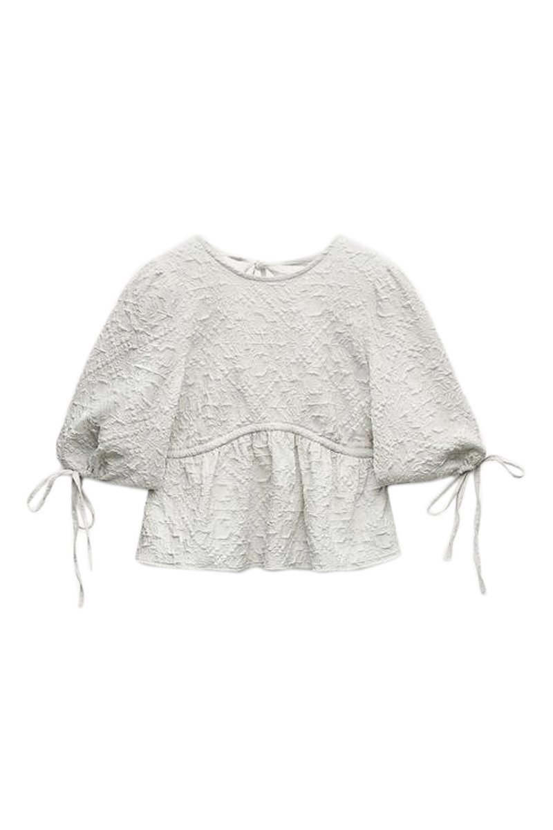 Blouse à manches courtes bouffantes avec liens de serrage.