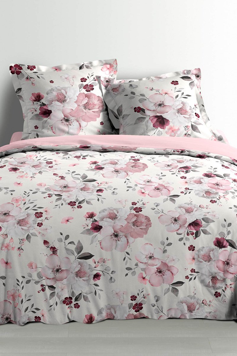 Parure de couette en percale de coton 78 fils/cm² Velvet Flower - Blanc et rose