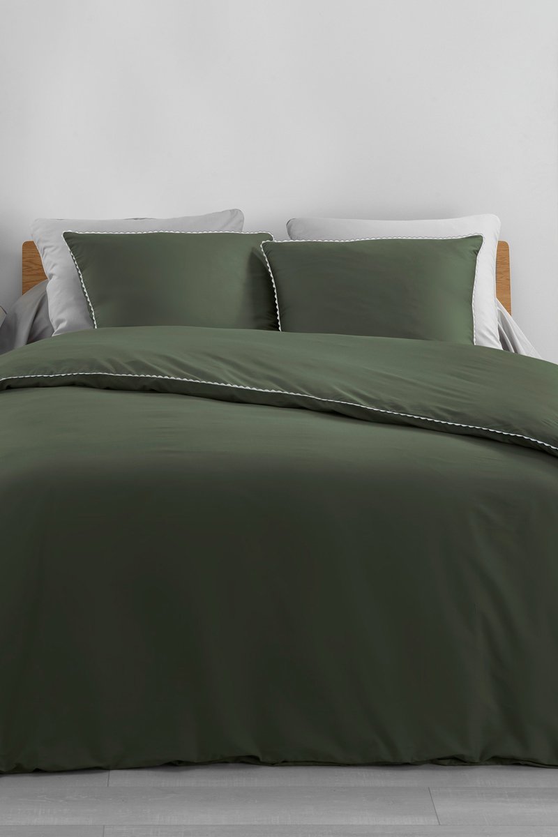 Parure de couette en percale de coton 78 fils/cm² Loumea - Kaki