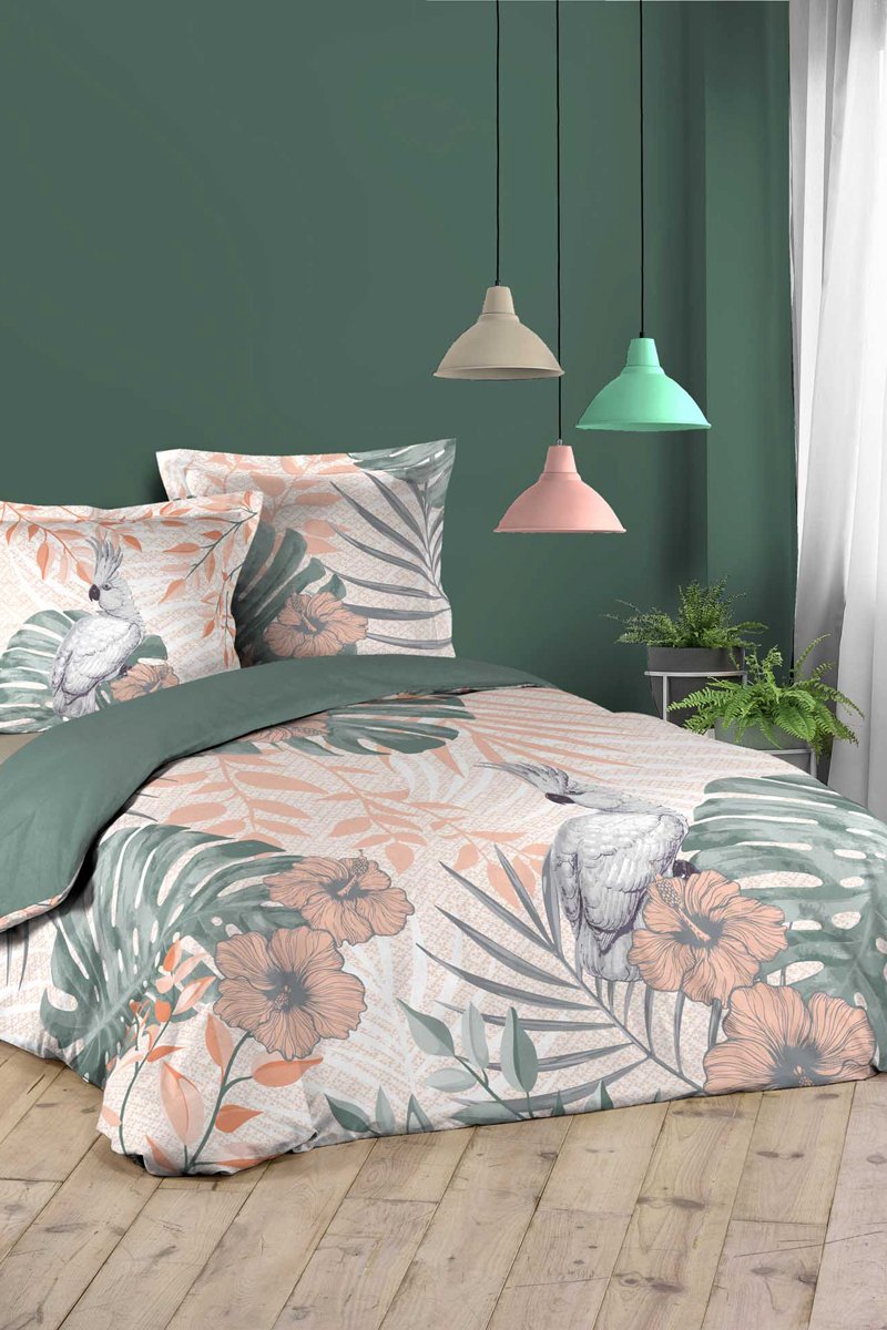 Parure de couette en coton - 42 fils/cm² Fidji - Blanc et pêche