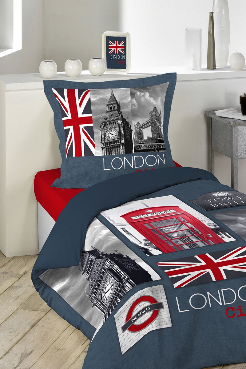 Parure de couette en coton - 42 fils/cm² City London - Gris