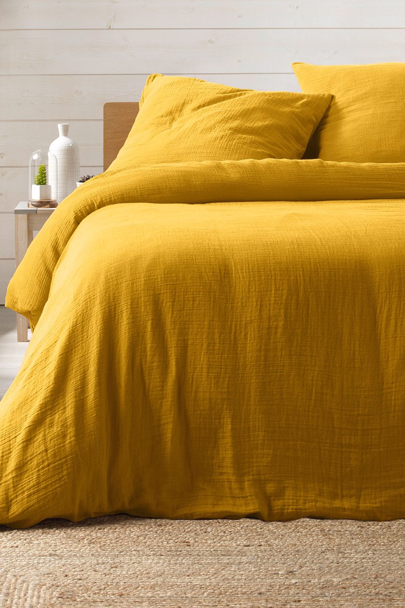 Parure de couette en coton - 57 fils/cm² Angelia - Jaune