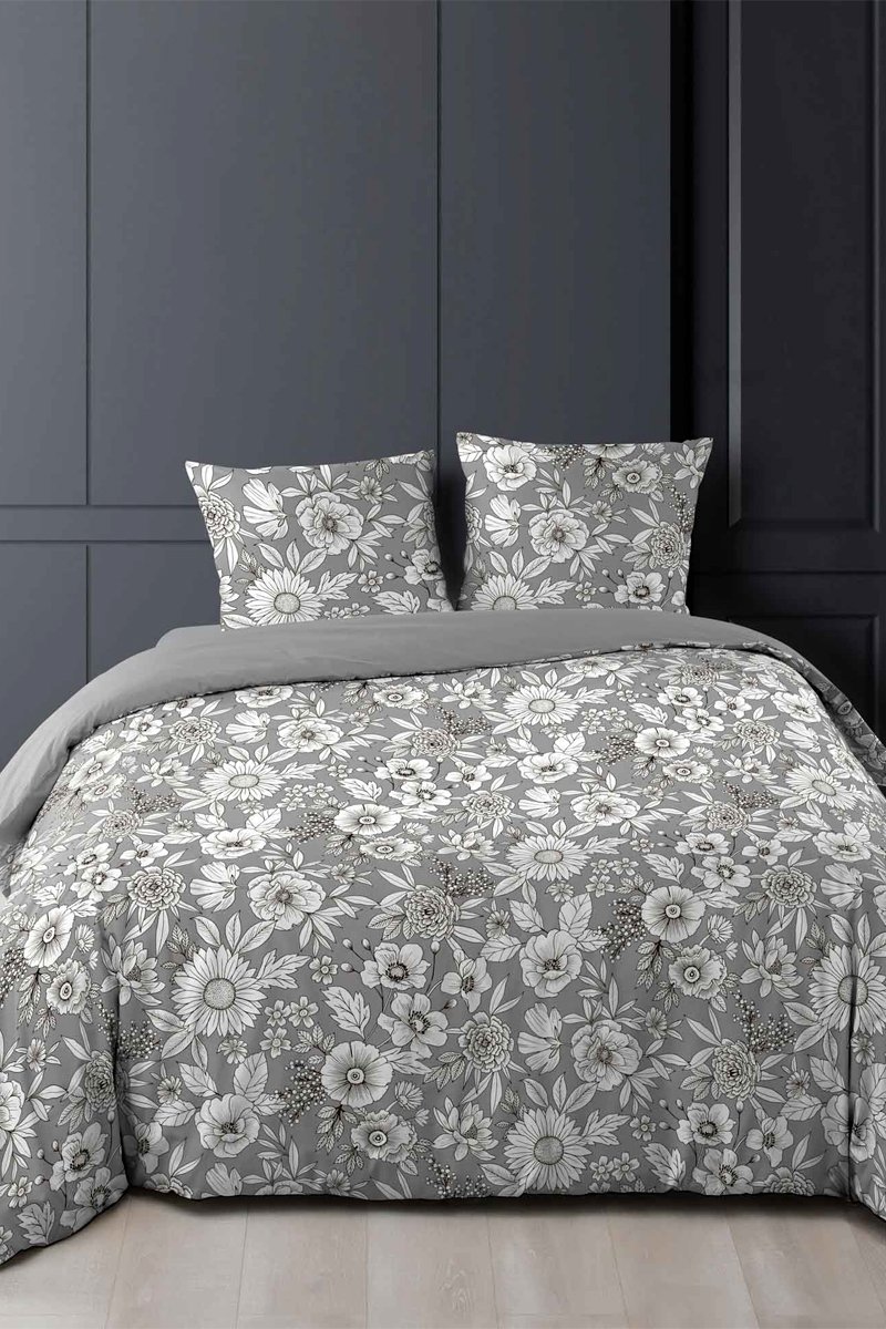 Parure de couette en coton 52 fils/cm² Allover Milady - Gris et blanc
