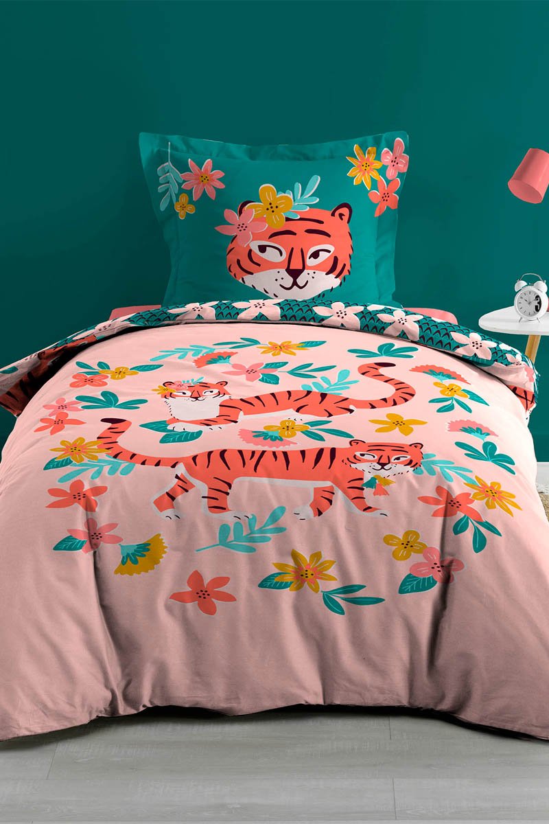 Parure de couette en coton 42 fils/cm² Tigrella - Rose et vert