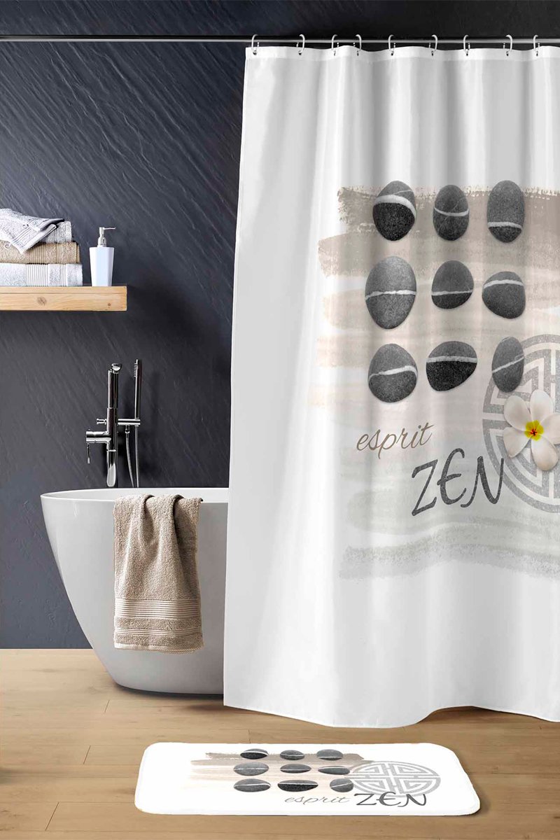 Rideau de douche Zenitude - Blanc et gris - 180 x 200 cm