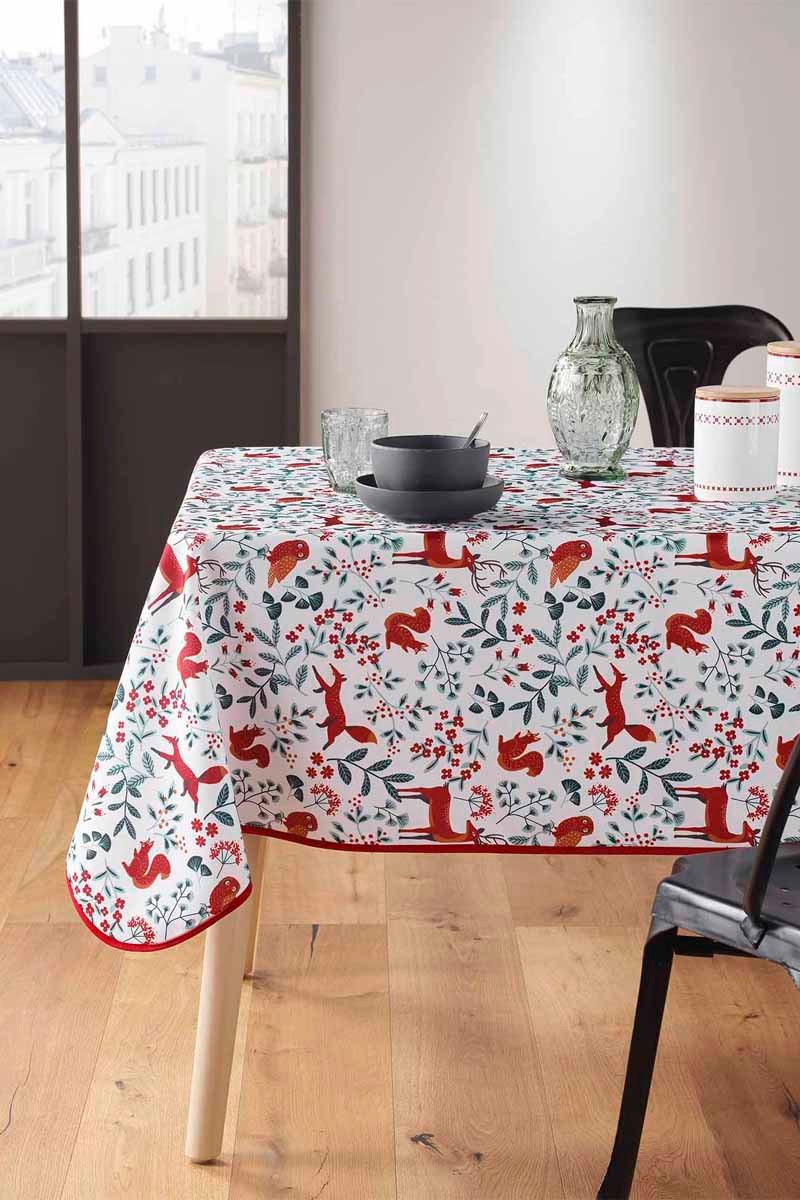 Nappe rectangulaire Forestine - Blanc et rouge